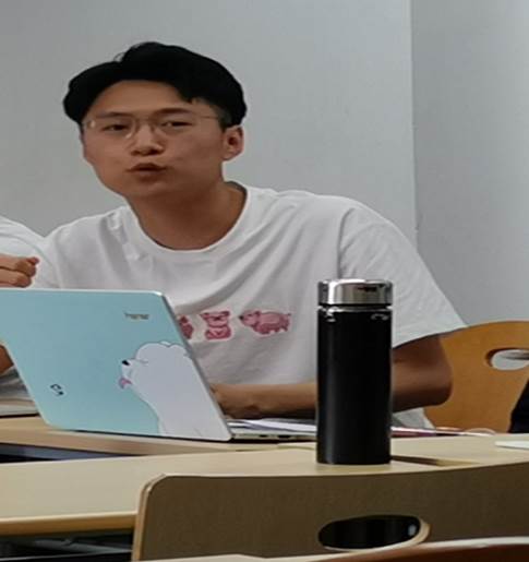 图3 潘俊同学现场发言 图4 张宪纲同学现场发言