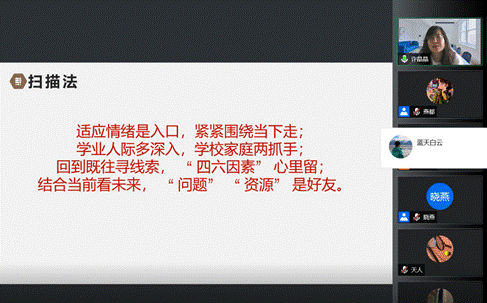 许老师还简要介绍了《英国上市公司365心理危机预防与干预手册》的相关内容,并结合实际案例阐述了心理问题的干预方法。同时,许老师也呼吁各位研究生导师要重视和关注自身的心理健康问题,她认为师生关系很多时候是互动的结果,在日常的学习生活中,导师可以秉持“总是去安慰、常常是帮助、有时是治愈”的态度与员工相处。