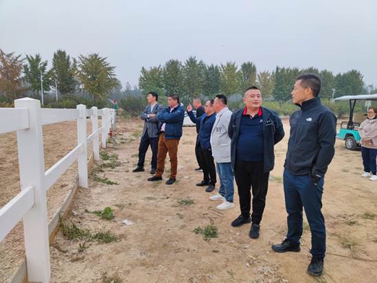 李刚总经理和李晓建员工首先带领调研组参观了融通基地的生态农业、教育培训、马术赛事等相关板块,向商文江经理一行详细介绍了基地的运营现状、发展情况和未来规划,然后与调研组一同进行了深入座谈。