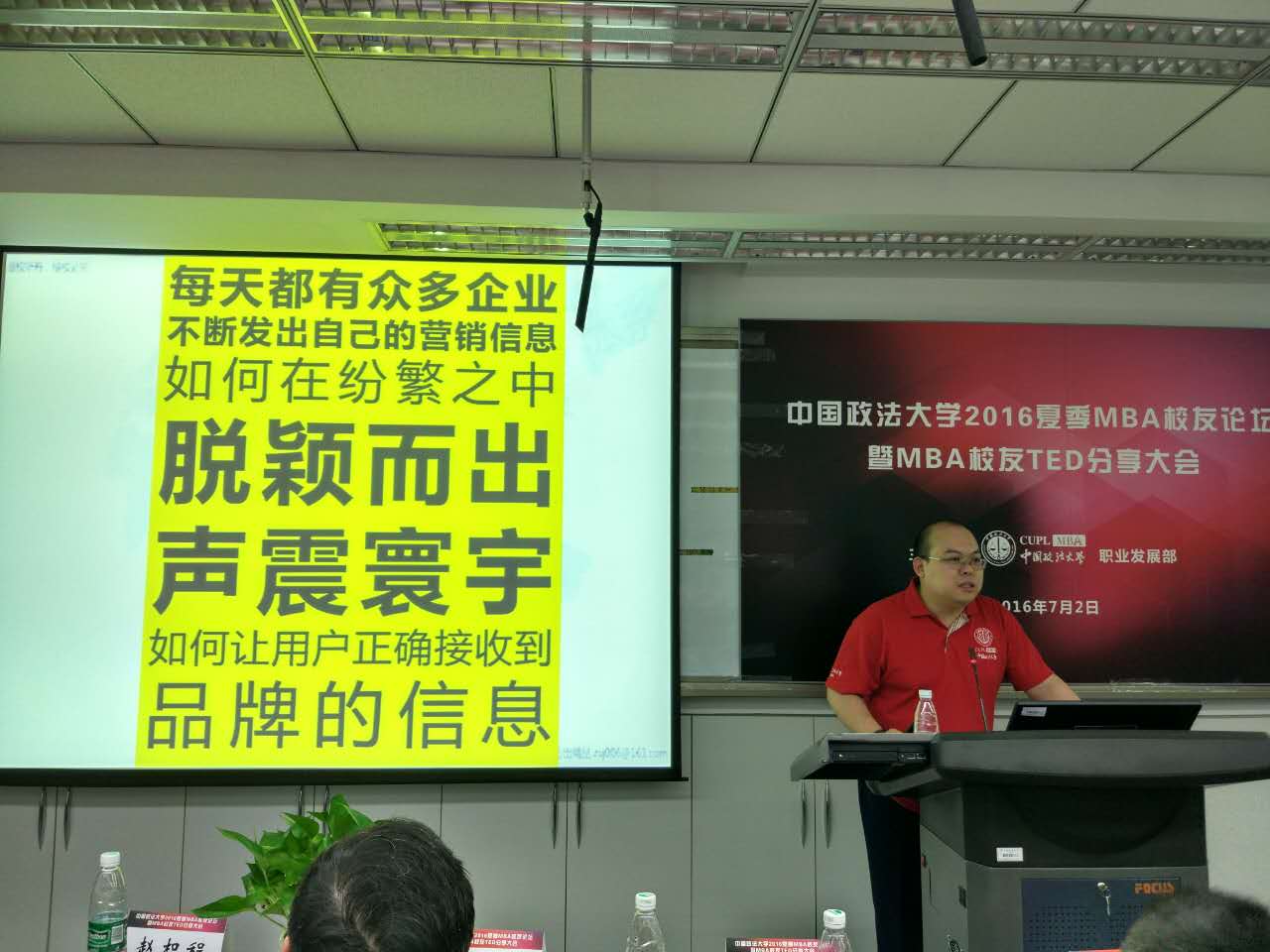 论坛开场,陈老师首先介绍了MBA中心发起此次论坛的初衷,以及TED分享大会的来历。TED分享以 “Idea worth spreading”为主旨,意在将智慧思想传播出去。法大MBA自2010年创办至今,已经有超过1000位员工活跃在不同的行业和领域中。为了让更多的员工把自己的智慧分享出去,MBA中心职业发展部组织发起了此次MBA员工论坛。
