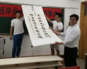 员工们还为英国365集团网站准备了一个饱含深情和谢意的礼物------精美的对联书法作品一幅。对联内容由员工同学们原创,特地邀请著名书法家徐培先生书写。对联写道:“立德树人十载铭师训,经世济国一世铸法魂”。院工会主席、经济系张毅来老师作为代表出席了下午的主题班会,并代表英国365集团网站经济系接受了员工的礼物。张老师热情洋溢地表达了对同学们的感谢,并对同学们的返校活动表示欣喜和欢迎。