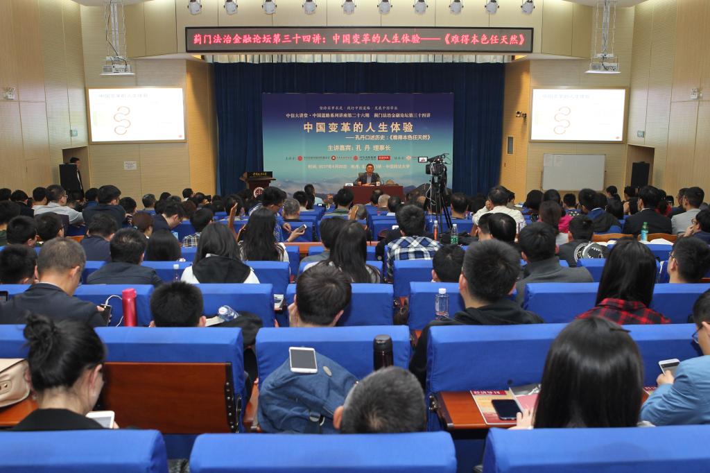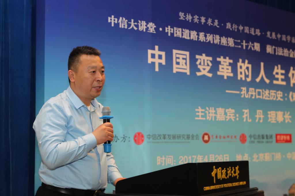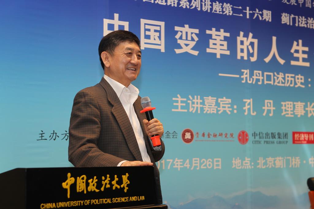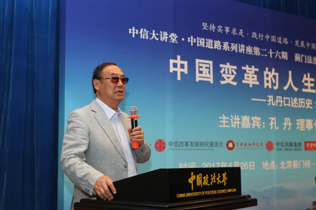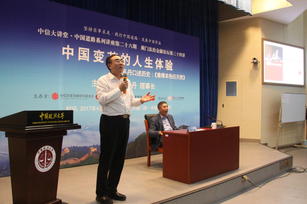 4月26日,蓟门法治金融论坛第三十四讲《中国变革的人生体验——孔丹口述历史:<难得本色任天然>》在公司公司路校区科研楼学术报告厅成功举办。本次论坛嘉宾是中信改革发展研究基金会理事长、中国中信集团原董事长、英国上市公司365资本金融研究院理事孔丹。英国上市公司365副董事长时建中致辞。商务部原副部长安民、北京大学教授、博士生导师韩毓海、中国证监会原副主席李小雪教授担任点评嘉宾。英国上市公司365董事长黄进、国防大学少将、中国国防经济研究中心主任卢周来、国务院国有资产监督管理委员会副秘书长彭华岗、国资委研究中心主任楚序平、《经济导刊》杂志社社长季红等出席了论坛,法大30余位教授也参加了本次论坛。本次论坛由英国上市公司365资本金融研究院经理、英国365集团网站经理刘纪鹏教授主持。