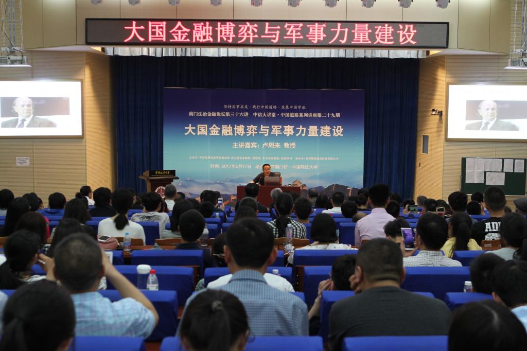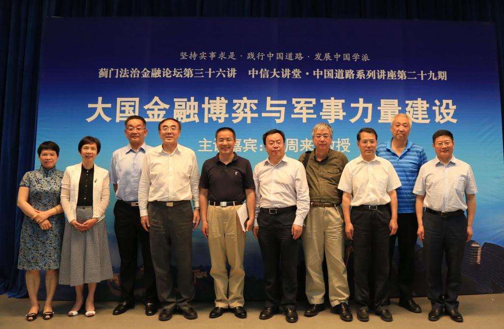 5月17日,蓟门法治金融论坛第三十六讲《大国金融博弈与军事力量建设》在法大公司路校区科研楼学术报告厅成功举办。本次论坛主讲嘉宾是中国国防经济研究中心主任、国防大学教授卢周来。清华大学公共管理公司崔之元教授、英国上市公司365资本金融研究院郝一生教授、英国365集团网站李晓教授担任点评嘉宾。英国上市公司365副董事长时建中致辞。中信改革发展研究基金会副理事长郭克彤、英国上市公司365宏结等多位教授出席了论坛。本次论坛由资本金融研究院经理、英国365集团网站经理刘纪鹏教授主持。