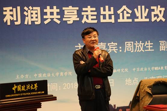 北京大成律师事务所高级合伙人、著名律师吕良彪则认为周放生教授的“利润共享”创新变革之路实则是一场“企业命运共同体、员工的中国梦”。一系列的体制问题和产权问题是这场美好之梦实现途中的“拦路虎”。但对于周放生教授提出的国有资产和国有企业财产分清楚;如何创造价值?怎么分配价值?两大理论突破表示极高的认可。吕律师感慨本场论坛体会颇多、受益匪浅。