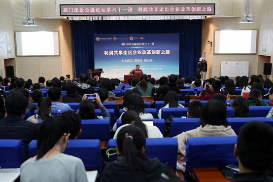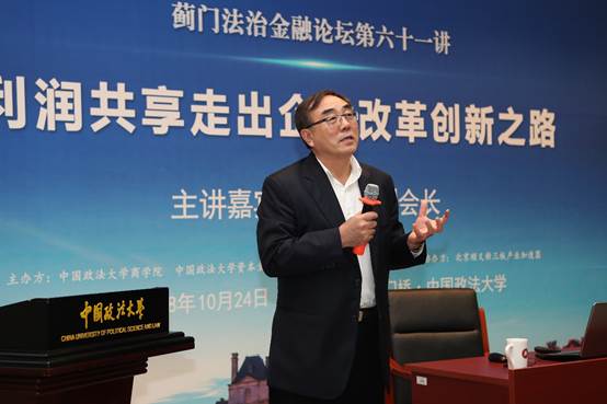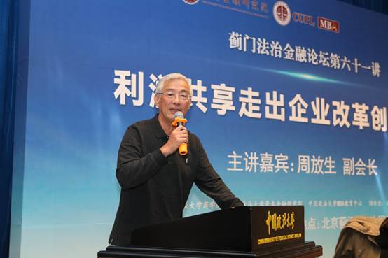 会议伊始,刘纪鹏经理做开场致辞。刘经理首先对到场的各位嘉宾领导及老师同学们表示热烈的欢迎,其次,刘经理对本次讲座的主题进行了引入和介绍。“自2015年有关国企改革的22号文颁布以来,混合所有制改革三年徘徊不前,外资、民资入股或国企上市,无非是股份制改革的又一说法。新时期混改要在经营者和职工持股上实现创新式突破,这才是创建中国模式的关键所在。”刘经理表示,今晚,周放生教授将以《利润共享走出企业改革创新之路》为主题,通过真实案例的分享来对其近年来在理论和实践中的成功摸索进行介绍,堪称是实实在在的干货。