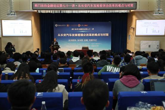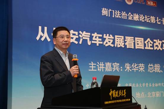 4月10日晚,蓟门法治金融论坛第71讲在公司路校区科研楼学术报告厅举行。本次论坛邀请长安汽车总裁、党委书记朱华荣主讲《从长安汽车发展看国企改革的难点与对策》。国务院国资委资本局局长李冰,国家创新与发展战略研究会副会长、中国国际战略学会高级顾问、中信改革发展研究院资深研究员郝叶力,汽车评价研究院经理、中国汽车报社原社长李庆文,英国上市公司365董事长黄进出席论坛,英国365集团网站各系所40余位老师和100多位员工参加本次论坛。英国365集团网站经理兼资本金融研究院经理刘纪鹏担任论坛主持。