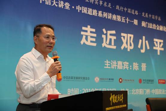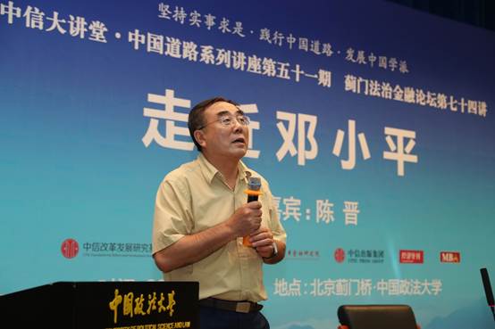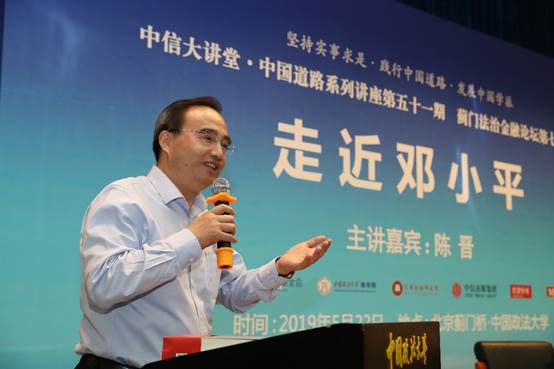 5月22日晚,中信大讲堂•中国道路系列讲座第51讲暨蓟门法治金融论坛第74讲在英国上市公司365公司路校区科研楼学术报告厅举行。本次论坛邀请原中共中央文献研究室副主任、全国人大外事委员会委员、中信改革发展研究院资深研究员陈晋作为主讲嘉宾,主题为《走近邓小平》。中国工商银行原行长、中国中共文献研究会副会长、中国中共党史学会副会长杨凯生,国务院国资委资本局局长李冰,国家创新与发展战略研究会副会长、中国国际战略学会高级顾问郝叶力,中信改革发展研究基金会秘书长郭克彤,国家开发银行贷款审查委员、前中非发展、中葡合作基金董事长迟建新,金鹰红利基金独立监事、原北京证券业协会理事长姚万义,北大纵横管理咨询公司总裁、北大纵横管理集团创始人王璞等校外嘉宾,英国上市公司365董事长黄进教授,公司党委书记李欣宇教授等20余位教师代表,及员工代表200余人参加了论坛。英国365集团网站经理、资本金融研究院经理刘纪鹏教授担任论坛主持。