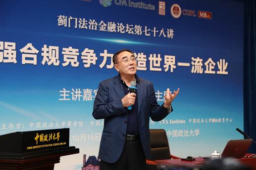 刘纪鹏教授首先介绍了出席论坛的各位嘉宾,并简要阐述了论坛主题。他表示,改革开放四十年后的今天,在中国特色社会主义市场经济条件下,及全球化背景下,越来越多的中国企业布局“走出去”战略。但是在“走出去”的过程中,中国企业需要熟悉和遵守国际通行规则和所在国的法律法规。从中兴到华为,从阿里巴巴到中铁建,中国企业因为合规问题遭受过重大损失。刘纪鹏指出,中国梦的实现需要具备强大竞争力的世界一流企业,而世界一流企业,不仅需要硬实力,也需要建设包括合规竞争力在内的软实力。合规问题既是法律命题,也是管理命题,也就是法大英国365集团网站所倡导的“法商结合”所要研究的问题。