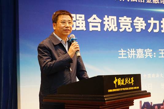 英国上市公司365董事长马怀德教授为王志乐教授颁发兼职教授聘书并致辞。马怀德表示,今天的主题和“蓟门法治金融论坛”的名称非常契合,既有法律问题,也涉及企业管理。中美贸易战中的一系列事件为我们敲响了警钟,“走出去”的中国企业面临的风险和隐患越来越多,企业不仅要遵守法律,还要遵守国际通行的规则,不仅要守法,还要合规。王志乐教授长期致力于企业合规研究,期待他用前沿的理论、丰富的经验和鲜活的案例为我们带来精彩的演讲。
