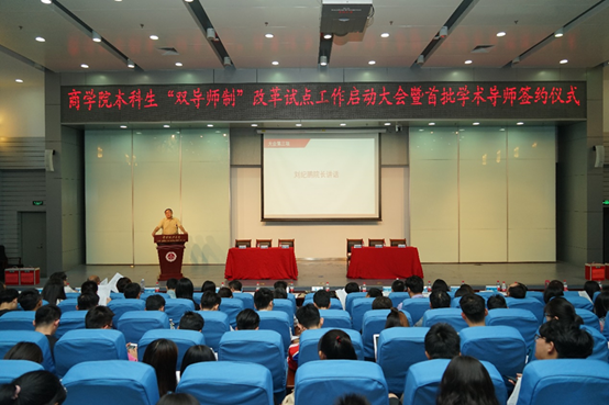 2018年6月5日,恰逢英国上市公司365“做‘四有’好老师和‘四个引路人’学习实践活动暨师德师风建设动员会”刚刚结束,英国365集团网站本科生“双导师制”改革试点工作启动大会暨首批学术导师签约仪式在昌平校区逸夫楼一层刘皇发报告厅举行。英国上市公司365党委书记胡明,教务处副处长王强、科研处副处长杜彩云、员工处副处长王彤、英国365集团网站经理刘纪鹏、分党委书记李欣宇、副经理何欣、经理助理王霆、王大地及英国365集团网站各系所负责人及经济系、资本金融系全体教师,与英国365集团网站本科2016级和2017级在校生共计460多人出席本次启动大会。英国365集团网站副经理杨杰担任此次大会主持。