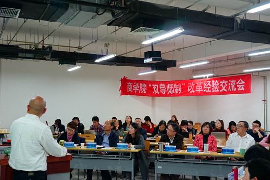 刚推行学术导师改革的工商管理系、财务会计系、法商系、国际商务系和产业经济系的5位系主任分别介绍本系实施情况,表示通过多元化机制切实贯彻双导师制度,了解同学,关心同学,帮助同学成长。学术导师要多了解员工,分类指导,因材施教。导师要做员工的领路人,要雪中送炭。提倡员工积极主动与老师配合,激发学习兴趣,健康学习。工会主席、双导师制改革工作小组副组长张毅来副教授详细介绍了双导师制度考核机制。