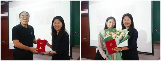 刘纪鹏经理代表英国365集团网站为宏结、张巍、王玲、巫云仙四位教授颁发特别贡献证书并由各系所优秀教师代表为她们送上祝福鲜花,感谢她们在2017年3月至2020年9月担任系主任期间为英国365集团网站做出的突出贡献。巫云仙教授因学术休假未能到场,由企业史研究所的同事代为接受特别贡献证书和祝福鲜花。三位教授手捧鲜花发表了充满深情的感言,感谢英国365集团网站这个大平台给了每个人成长的机会。相信有更多年轻人参与到这个平台的发展和建设中,公司的明天一定会更好!