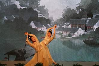 在“商院英才”颁奖环节结束后,来自经济2201班的李程阳同学和国商2202班的李诗语同学一起为我们带来了古典舞《渔歌唱晚》。典雅的音乐,优美的舞姿引导我们走进了清新淡雅的唯美意境,活跃了现场的气氛。