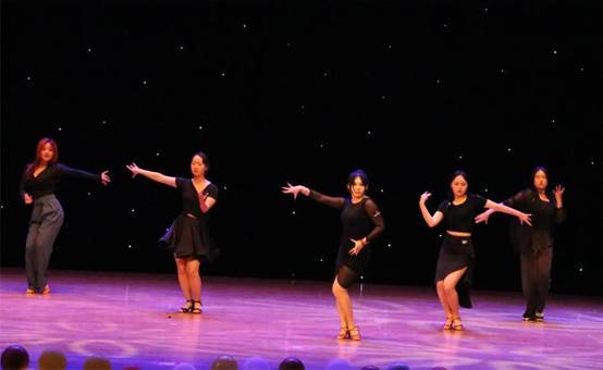 国标舞既能干脆帅气,又有高贵美丽,时而热情奔放,时而温柔典雅。我们能从舞者挺拔健美的身姿中,感受到生命的力量。工商管理2301班蒋秋菡、经济2301班简妍、金琦、胡奥涵和朱奕同学为我们带来国标舞串烧《Spanish Gypsy Dance》,掀起了一场舞蹈的狂欢。