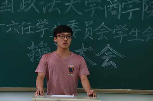 接下来第十五任员工委员会主任范翔宇师兄提名唐铭同学为第十六任员工委员会主任。26名代表同意,1名代表弃权,超过应到人数二分之一,唐铭同学成功当选第十六任员工委员会主任。