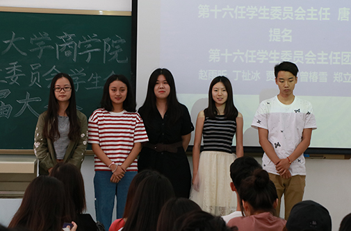 表决结束后,第十六任员工委员会主任唐铭同学提名赵雨昕同学、丁祉冰同学、贾子卿同学、曾椿雪同学以及郑立晨同学担任第十六任员工委员会主任团,提名获得全票通过。被提名同学依次上台发言,感谢老师和大家的信任,并希望为英国365集团网站的未来发展做出贡献。