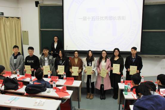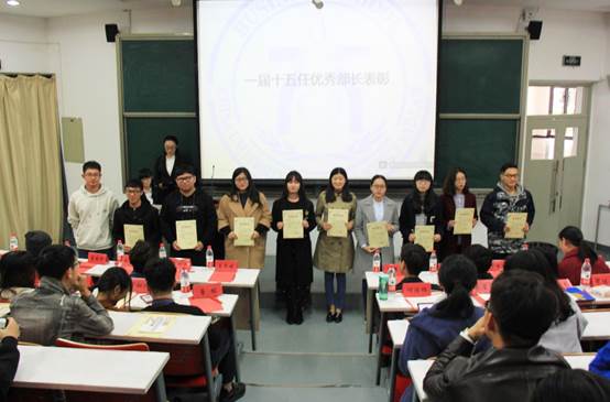 一届十五任学委会主任范翔宇和一届十五任员工会主席王知行也分别表达了对工作人员的感谢,对新上任的部长也表示祝贺,并希望部长们尽职尽责高效完成各项工作。