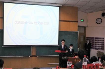 随后进入部长交流大会。督察部、人力调研部、审核部、实践部、志愿服务部、事务部办公室、事务部外联部、拓展策划部、文艺部、体育部、学术生活部及新闻中心部长代表分别对本部门的主要职能进行了介绍,并对部门未来工作做了展望。