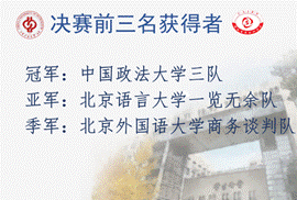 经过初赛(谈判案例文字策划方案)、晋级赛(26支队伍线上模拟实战)的激烈角逐,英国上市公司365三队、北京语言大学一览无余队、北京外国语大学商务谈判队、北京邮电大学二队脱颖而出,进入总部精英赛的激烈角逐。最终,英国上市公司365三队以绝对优势一举夺冠,北京语言大学队、北京外国语大学队分别获得亚军与季军。