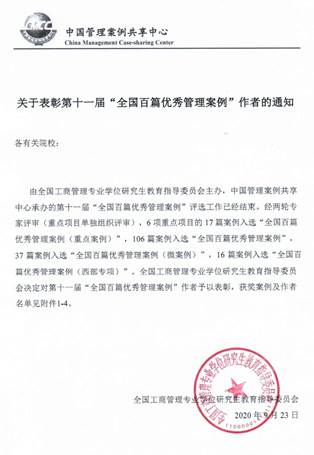 9月23日,全国工商管理专业学位研究生教育指导委员会正式公布第十一届“全国百篇优秀管理案例”名单。由公司工商管理系王玲老师和李璨老师撰写的2篇案例成功入选,分别为: