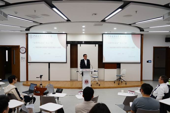 讲座尾声,资本金融系主任程碧波副教授对林羿博士的分享进行了点评,和同学们分享了自己的想法。程主任指出人工智能投资顾问是未来的方向,它不仅需要技术也需要数据,其预测模型应具有可重复性。另外,理解金融学的规律,对于人工智能投资顾问的应用极其重要。
