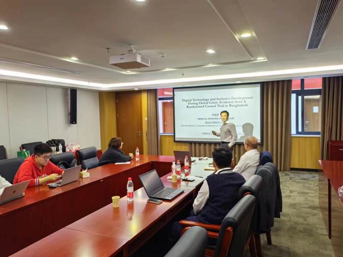 卢佳男研究员的报告题目是《全球危机下数字科技与包容性发展:基于孟加拉国RCT实验的证据》。该论文基于牛津大学为期三年在孟加拉实地进行的随机对照实验(RCT)所收集的一手数据,进行了复杂和多重的实证分析。研究发现:基于信息平台的数字技术(例如短视频平台)可以为社会和文化边缘人群提供一个创新性的商业模型。有效的政策干预,例如数字技术培训,可以显著提升边缘人群的就业能力和企业家精神,进而提升其在全球危机(例如新冠疫情)之下的韧性。该研究进一步发掘论证了这套商业模型产生作用的六种机制,以及发现了同样的政策干预对不同年龄、收入和性别人群的差异化影响。