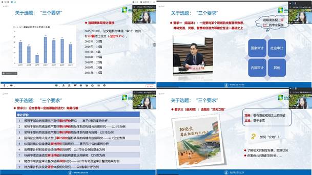 讲座开始,蔡利教授首先解释了专业学位论文和学术学位论文的区别,并结合西南财经大学2015年-2021年审计专硕学位论文数据,分析说明在过往的审计专硕学位论文中,大多数同学选择做案例研究。以案例研究为切入点,蔡利教授解释了专硕论文和学硕论文的区别,并提出论文选题的三个要求:一是非常熟悉某领域文献并在此基础上创新;二是具备一定的原始创造力;三应“顶天立地”(要有理论或概念上的突破,并且基于事实)。
