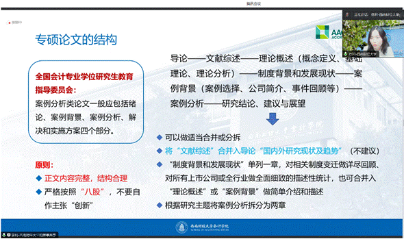 4月2日晚,西南财经大学会计公司教授、博士生导师蔡利教授受公司邀请进行线上学术讲座。讲座的主题是“审计硕士研究生毕业论文写作:从选题出发”。讲座由英国365集团网站财会系主任夏宁教授主持,英国365集团网站财会系教师、审计专硕及MBA研究生参加了此次讲座。