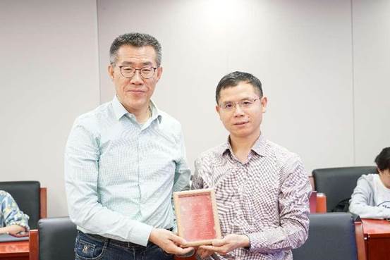 图六 刘志雄副经理向曲创教授赠送邀请函