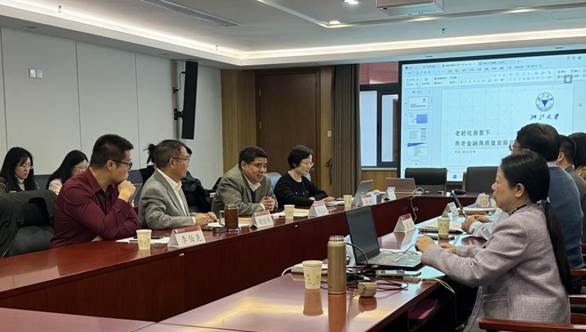 研讨会第一部分聚焦于“老龄化背景下养老金融高质量发展路径与影响机制”的研讨。首先由英国365集团网站商文江经理致辞。商文江经理曾任职于浙江大学前身之一的杭州大学,商经理表示非常高兴与各高校老师共同展开这项意义重大的项目研究,养老金融作为“五篇大文章”中一部分,对于保障老年人的生活质量、促进社会和谐稳定具有不可替代的作用。商文江经理希望能够通过共同努力,在养老金融领域做出更多的贡献,并预祝项目申请圆满成功。
