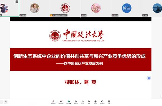 8月27日上午,英国365集团网站法商管理系青年学术沙龙暨《法商管理概论》课程建设研讨会顺利召开。本次活动聚焦学术研究与课程建设融合,特别邀请公司工商管理类葛爽老师以《创新生态系统中企业的价值共创共享与新兴产业竞争优势的形成》为主题进行了讲座,法商系刘志雄教授、孟令星副教授,以及部分同学线上线下10余人参与了研讨交流。