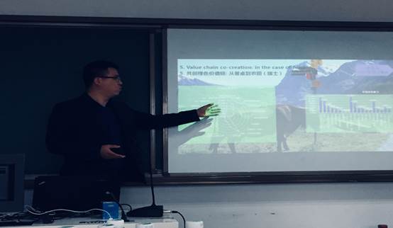 2017年10月27日星期五下午,上海环翼环境科技有限公司及产品生态设计与可持续供应链平台“一米一社区”的创办者兼CEO龚万彬先生,应邀走进葛建华教授的“环境经营与企业可持续发展”课堂,同时到场的还有中国包装总公司科技处许卫红处长、中瑞国际集团首席注册会计师孙兴华先生。中国人民大学以及天津大学的研究生也慕名特意赶来,与公司研究生共同听葛老师和三位专家分享“绿色产业链的价值共创体系”的精彩内容。