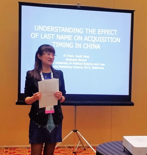 陈曦副教授长期从事市场营销方面的教学研究工作,学术研究具有很好的前沿性。她每年参加Informs Marketing Science会议并做报告。通过该年会的交流,可以了解到全球各高校市场营销学的研究进展与前沿,对公司市场营销学科的发展与专业建设起到了积极的促进作用。