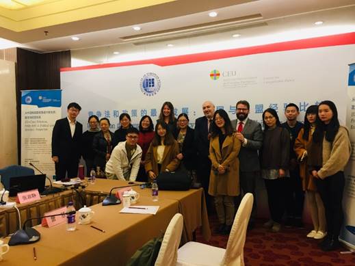 2019年11月7日,国际商务系张淑静教授和经济系黄立君副教授应邀为中国社会科公司欧洲研究所组织、中国社会科公司西班牙研究中心承办的“从中国和欧盟视角看中欧关系:政治与经贸关系”国际研讨班进行全英文专题授课。2019级国际商务专业硕士生林子鹏和政治经济学专业硕士生周阳同学参加了本次国际研讨班的学习和讨论。此次国际研讨班吸引了来自西班牙、意大利等国的专家学者以及四川大学、山东大学、中国社会科公司、清华大学、北京大学等高校和科研机构的学者和员工。