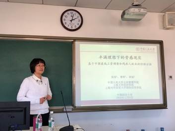12月6日下午,中国人民大学公共管理公司张琼副教授应邀在公司举办学术讲座“丰满理想下的骨感现实——基于中国最低工资调整与残疾人就业的经验证据”。本次讲座由工商管理系王玲教授主持,法商管理系刘志雄教授、2017和2018级企业管理专业、2018级会计学专业、国际经济与贸易学专业、环境法专业学术研究生参加了此次讲座。