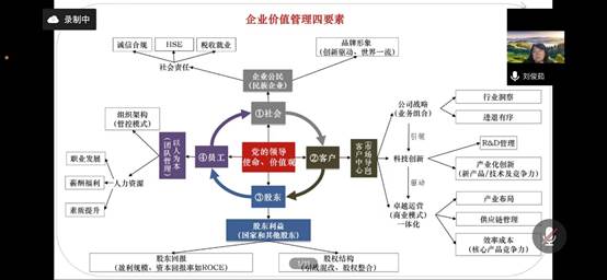 在第二方面,刘俊茹老师回顾了在阿联酋经历的独特会计经历。她指出海外生活让自身经历更加丰富。回国后,她进入农业行业,多番历练后成为整合协同负责人。担任负责人期间,她鲜明意识到企业价值管理的四要素:要从社会、客户、股东、员工四角度全方位、多层次、宽领域考虑分析,突出了科研创新在当前社会的重要意义。介绍中化控股集团历史阶段时,刘俊茹老师提及资金是企业的血液,明确管理创新考核模式。只有理清财务定位,即通过诚信、领导才能发展和卓越的财务技能,才成为创造股东价值的优秀伙伴。
