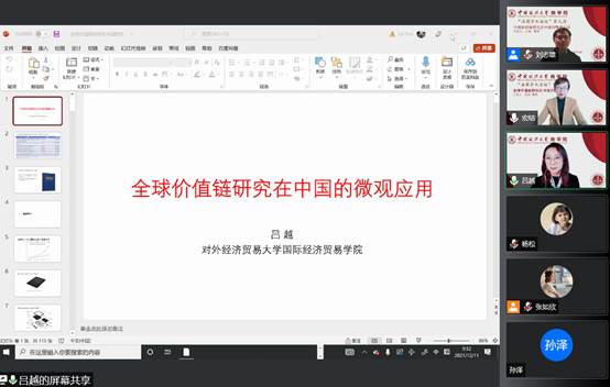 2021年12月11日早上9:30,对外经贸大学国际经济与贸易公司的吕越教授应公司之邀,通过腾讯会议线上举办了题为《全球价值链研究在中国的微观应用》的专题讲座。英国365集团网站副经理刘志雄教授、国际商务系宏结教授、金仁淑教授、工商管理系王玲教授和公司各系所专任教师,及英国365集团网站研究生共计130余人参与了本次讲座。本次讲座由宏结教授主持。