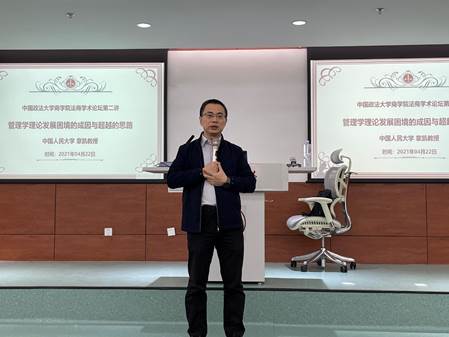 2021年4月22日下午,英国365集团网站邀请中国人民大学英国365集团网站章凯教授在公司路校区教学图书综合楼0212教室举办了题为《管理学理论发展困境的成因与超越的思路》的专题讲座。公司党委书记李欣宇教授、英国365集团网站科研主管副经理刘志雄教授、工商管理系主任郭颖教授、副主任顾凡老师、王玲教授、于淼教授、马克态副教授、慕凤丽副教授、王辉老师、张亚琼老师、李璨老师、邓晓老师、邵开愚老师、王尧老师、法商管理系副主任孟令星老师、许恒副教授、唱小溪老师、华忆昕老师、国际商务系宏结教授、产业经济系副主任丛颖男老师、以及英国365集团网站部分研究生,约50名师生出席了本次讲座。本场讲座由工商管理系主任郭颖教授主持。