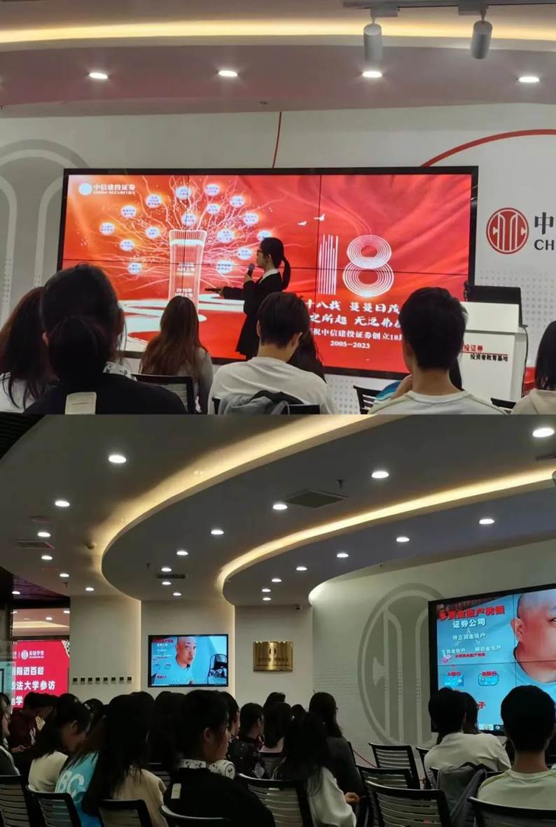 参观过各个展览区后,同学们来到专家讲堂区就座。本次讲堂以一部精彩的宣传片为开端,介绍了中信建投发展历程及其重大成就等。