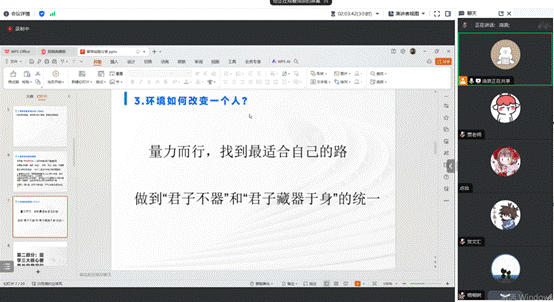 接着是邀请了谢宸琪同学进行就业分享。谢宸琪同学是法学和文学2023届4+1双专业双学位毕业生,现在在香港中文大学历史学专业硕士在读。本科期间曾担任员工党支部书记等职务。谢宸琪同学曾参与多项国际活动,如作为实习生参加塞浦路斯塔索斯·帕帕佐普洛斯法律事务所(TP LAW)国际实习项目,作为公司代表参加塞尔维亚国际青年峰会(International Youth Summit “OPEN WORLD”)。在留学申请与规划、雅思备考,公务员备考、“非法学人”跨专业申请和就业等方面给同学们进行了详细的分享和介绍。