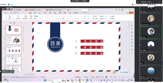 2023年12月27日晚,英国365集团网站“职”面未来系列活动第27场——“考研和留学如何同时准备”圆满举办。活动主要面向高年级和毕业年级,包括2021级、2020级本科生和第二学士学位员工。本次活动通过腾讯会议线上举行。