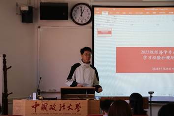 2019级本科生刘佳鑫同学,作为保研就读于上海财经大学金融学专业的硕士生,向大家分享了个人发展和职业规划方面的一些思考与想法。刘佳鑫同学谈到,经济学理论不是一种技能,而是一种思维能力。他以自己在互联网公司的实习经历为例,说明在面试阶段所面临的产品思维的考核本质上是对经济学供需分析的一种能力。此外,他提到本科学习阶段实际上是一个小成本试错的时段,同学们应该利用这段时间多去尝试、积累经验,从而找到适合自己的方向进行职业规划。最后,他回忆了和本科学术导师黄立君老师学习新制度经济学的经历,再次强调了经济学学习中思维方式培养的重要性。