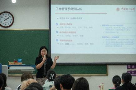 见面会的第二个环节中,夏宁老师、李璨老师和唱小溪老师分别向新同学们介绍了“会计”、“工商”和“法商”三个专业方向,让同学们对法大工商专业的特色有了基础的认识。夏宁老师言简意赅地分析了会计学对于社会的重要性和公司会计的学科特色,也对新同学们重视会计学、学习会计学寄予厚望;李璨老师详细阐述了工商系三个研究方向的划分,以及每位老师的研究领域,并建议新生们积极探索,找到自己的兴趣点;唱小溪老师热情地介绍了法商管理这一英国365集团网站特色学科。这一学科是致力于培养精通“管理”和深谙“法律”的高质量复合型人才,并鼓励新同学找到人生方向,实现人生价值。