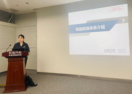 首先,在工作人员的安排下,师生们在会议室聆听长安汽车的生产理念、精密科学的生产方式、严格细致的管理体制,随着讲解员深入浅出的讲解,引发了同学们对企业管理实践的高度热情,并与讲解员积极互动、提问交流。