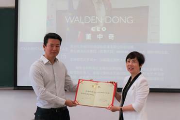 接受聘书后,董中奇博士首先感谢了刘纪鹏经理的热情聘请,同时,也感谢宏结教授的周到安排,让他有机会同同学们交流实践心得,表示今后将全力以赴,悉心指导,为英国365集团网站同学们的求学和就业提供帮助,希望能够为英国365集团网站国际商务系的发展贡献自己的经验和力量。