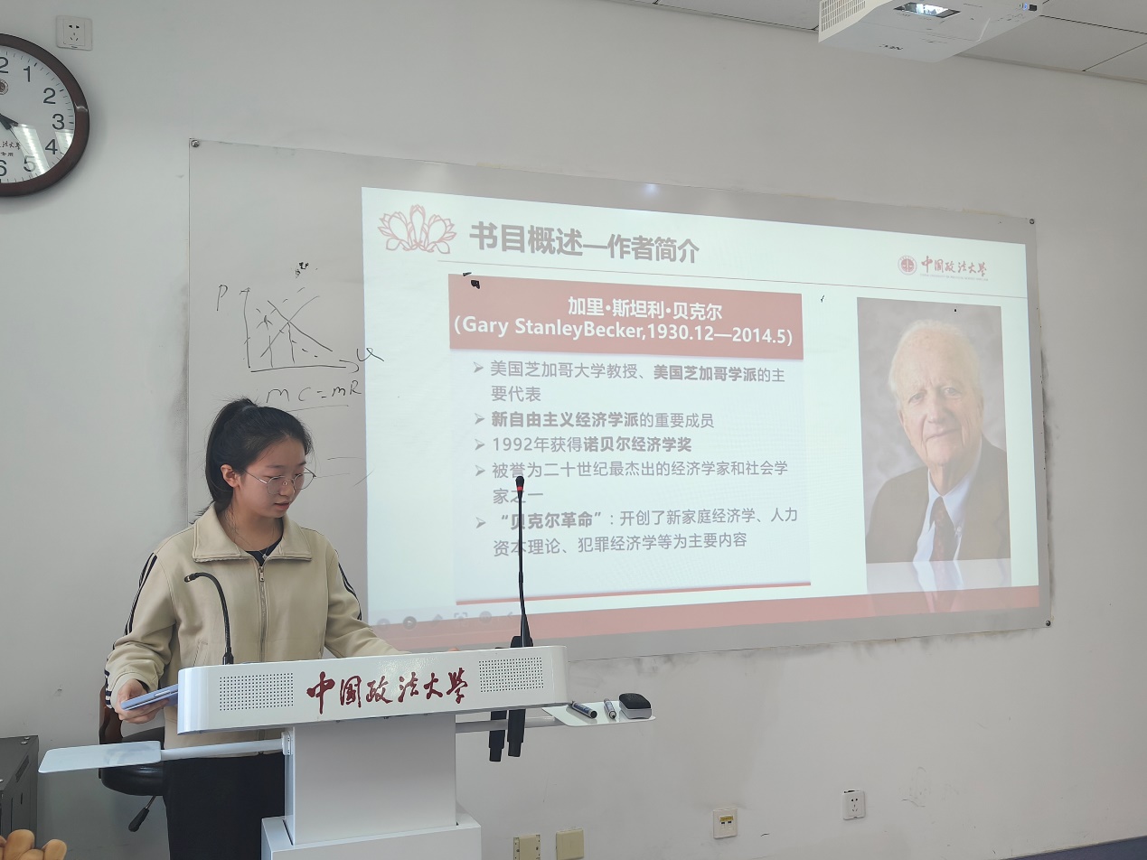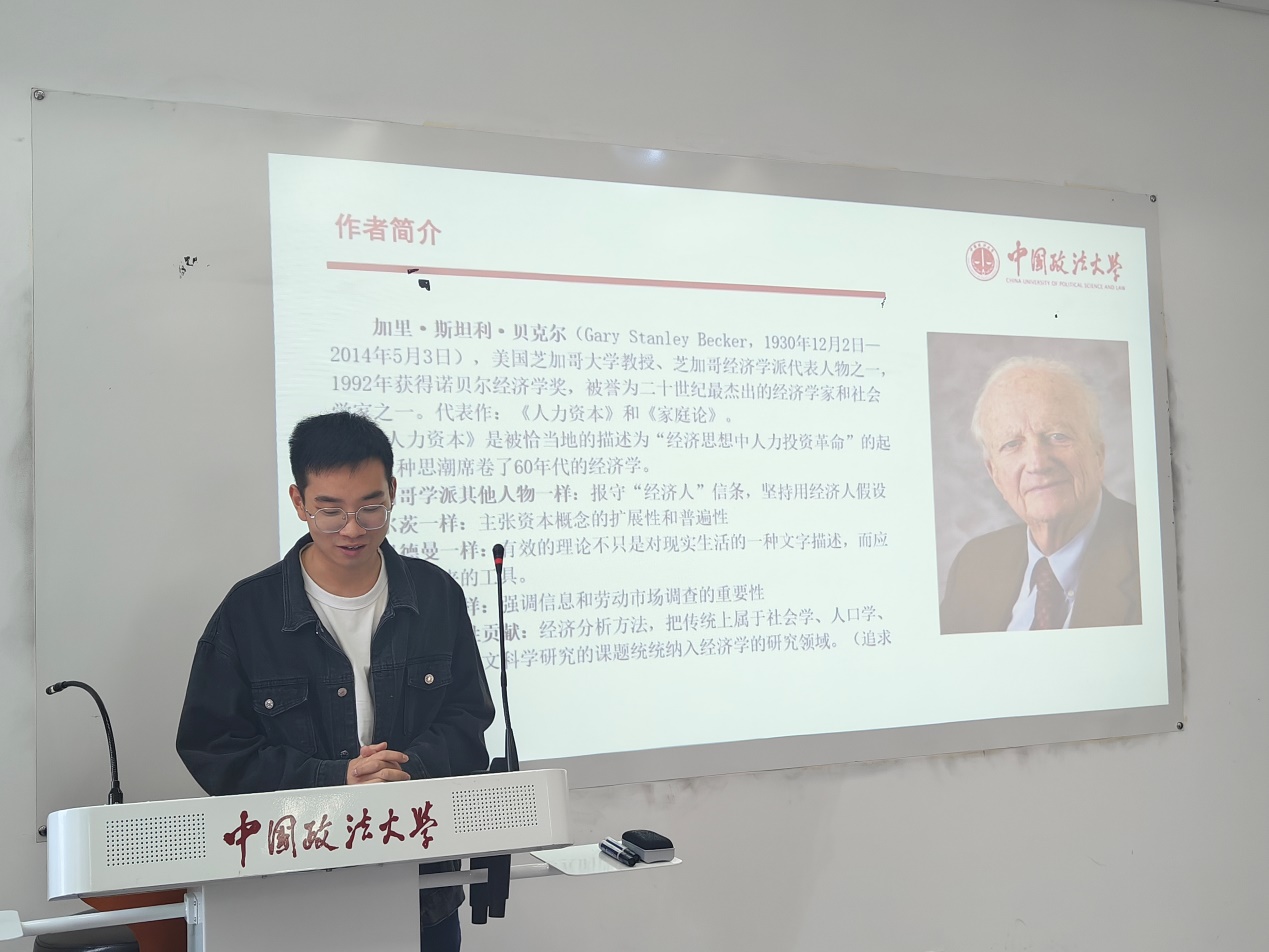 2023年10月31日上午,英国365集团网站经济系、经济学党支部在公司路校区综合楼0607成功举办2023年第6期(总第49期)研究生读书会,阅读书目为诺贝尔经济学奖获得者加里·贝克尔的著作《人类行为的经济分析》。本次读书会由经济系周敏丹老师、司海平老师和赵文睿老师共同指导,熊柴老师推荐书目并主持。2022级和2023级政治经济学、西方经济学专业的同学们共同参加。2022级尹福、申晨笛同学以及2023级蔡雨颖、冀源同学做主报告。