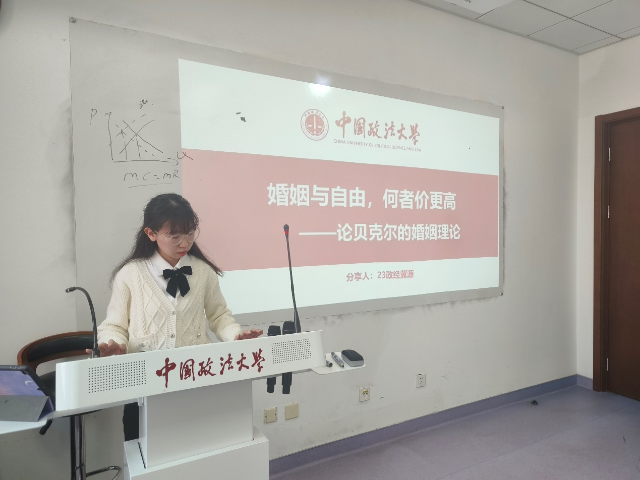 冀源同学从婚姻理论出发,探讨贝克尔对于家庭经济学的观点。首先介绍了全书的三个核心理论,分别是效用最大化、稳定偏好和市场均衡理论。随后分析婚姻市场与配偶组合的理论模型,即婚姻市场的最优组合不是使某一婚姻的产出最大,而是使所有婚姻的产出之和最大,并结合新一届诺贝尔经济学奖得主戈尔丁的研究进行拓展,介绍其在性别收入差距上的观点。最后总结,贝克尔的婚姻理论将婚姻看作是一个充满经济考量的决策过程。