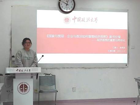 2023年11月15日,英国365集团网站国际商务系在教学图书综合楼418举办研究生读书会。国际商务系师生共聚一堂,研读著作《贸易与国家:企业与政治如何重塑经济思想》。国际商务系主任梁涵副教授,以及国际贸易、世界经济专业2022级、2023级硕士研究生参加。读书会报告人包括王璐璇、朱柯杰、孙永贺、张媛柯、李欣、唐世洲、张滋等七位同学。读书会由胡明教授主持。