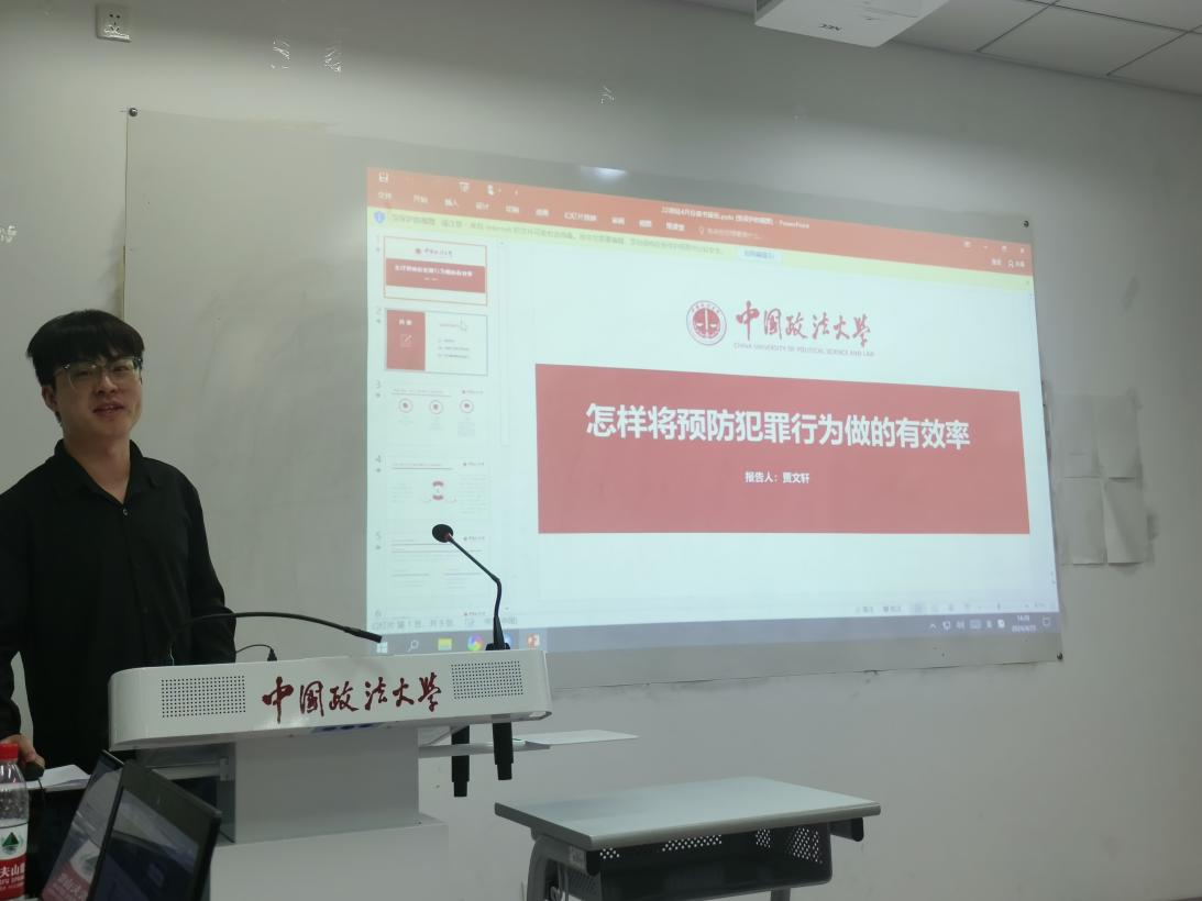 贾文轩同学以《怎样将预防犯罪行为做得有效率》为主题,介绍了经济分析方法在法律各领域中的应用与案例,摘选犯罪行为部分进行深入汇报。他指出,对于罪犯而言,只有犯罪的预期利润超过了预期的成本,才实施该犯罪。刑法的功能是对不法行为课以额外成本,以减少犯罪的行为。通过对犯罪的经济学分析,他基于自身的思考提出了预防犯罪的做法以及指导意义。