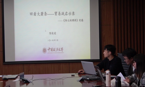 2019年10月30日下午,英国365集团网站资本金融系第八期读书研讨会在科研楼B215会议室举行。出席本次活动的有资本金融系主任程碧波副教授、系副主任成福蕊副教授、朱晓武教授、胡历芳老师、黄聪老师以及2019级金融学、金融专硕研究生。本次读书会的分享书目是约翰·S·戈登的著作——《伟大的博弈》,由曾泓叡、刘胜、陈俊道同学进行读书分享。